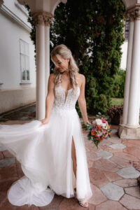 A Brunszvik Kastély esküvő helyszínül szolgált Janka és Beni nagy napján Martonvásáron. A teljes egészében benti esküvő a kastély elegáns termeiben valósult meg, ahol az épület karaktere meghatározta az összhatást. A dekoráció célja az volt, hogy illeszkedjen a térhez, és harmonikusan egészítse ki azt.