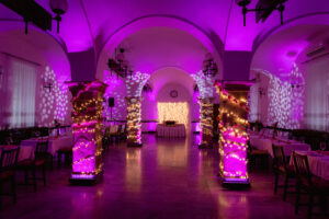 Esküvői dekoráció és világítás a kastélyban
